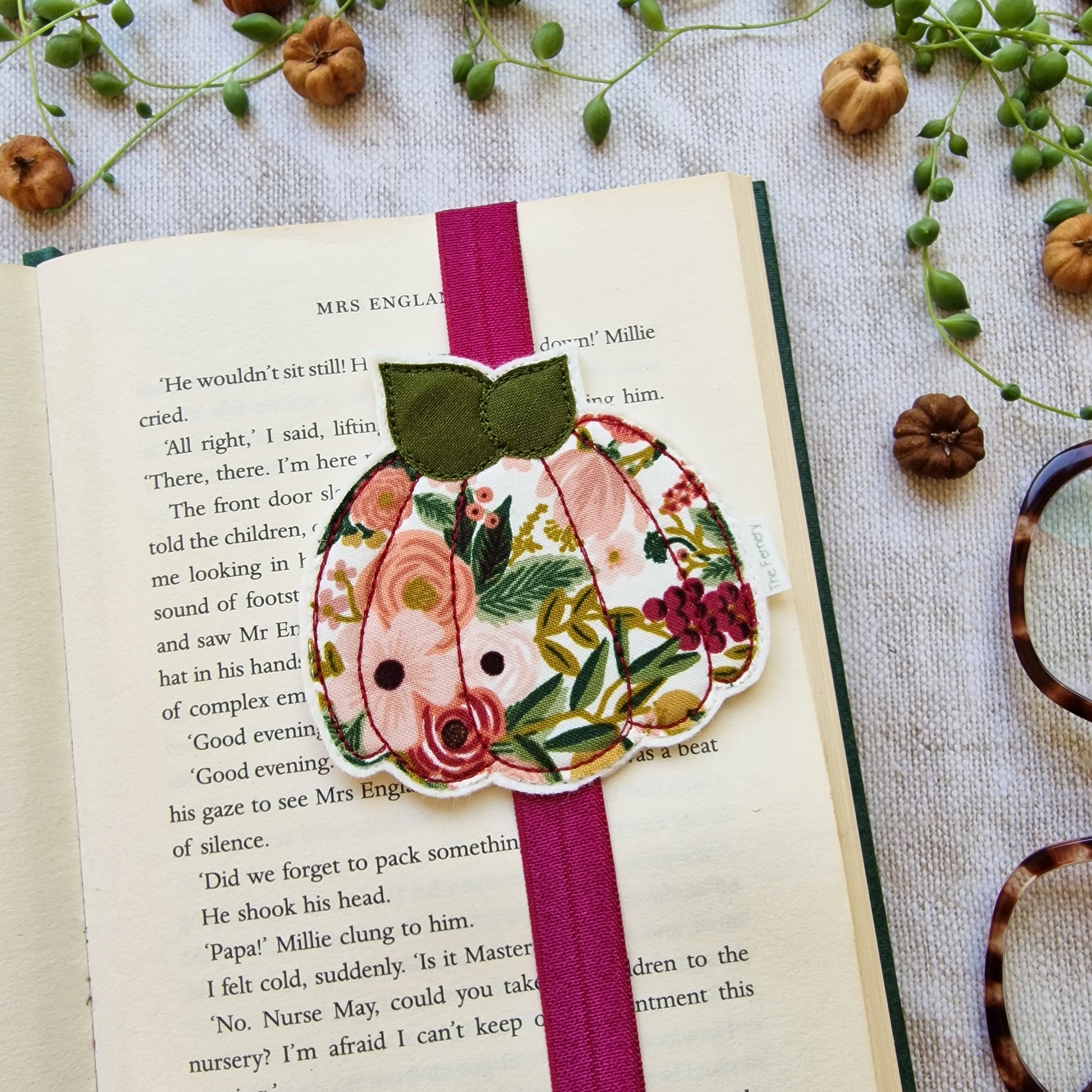 When I found this gorgeous fabric I just KNEW it would be made into Pumpkins! It's perfect for these lovely bookbands, to keep your page in all those cosy, autumnal reads.