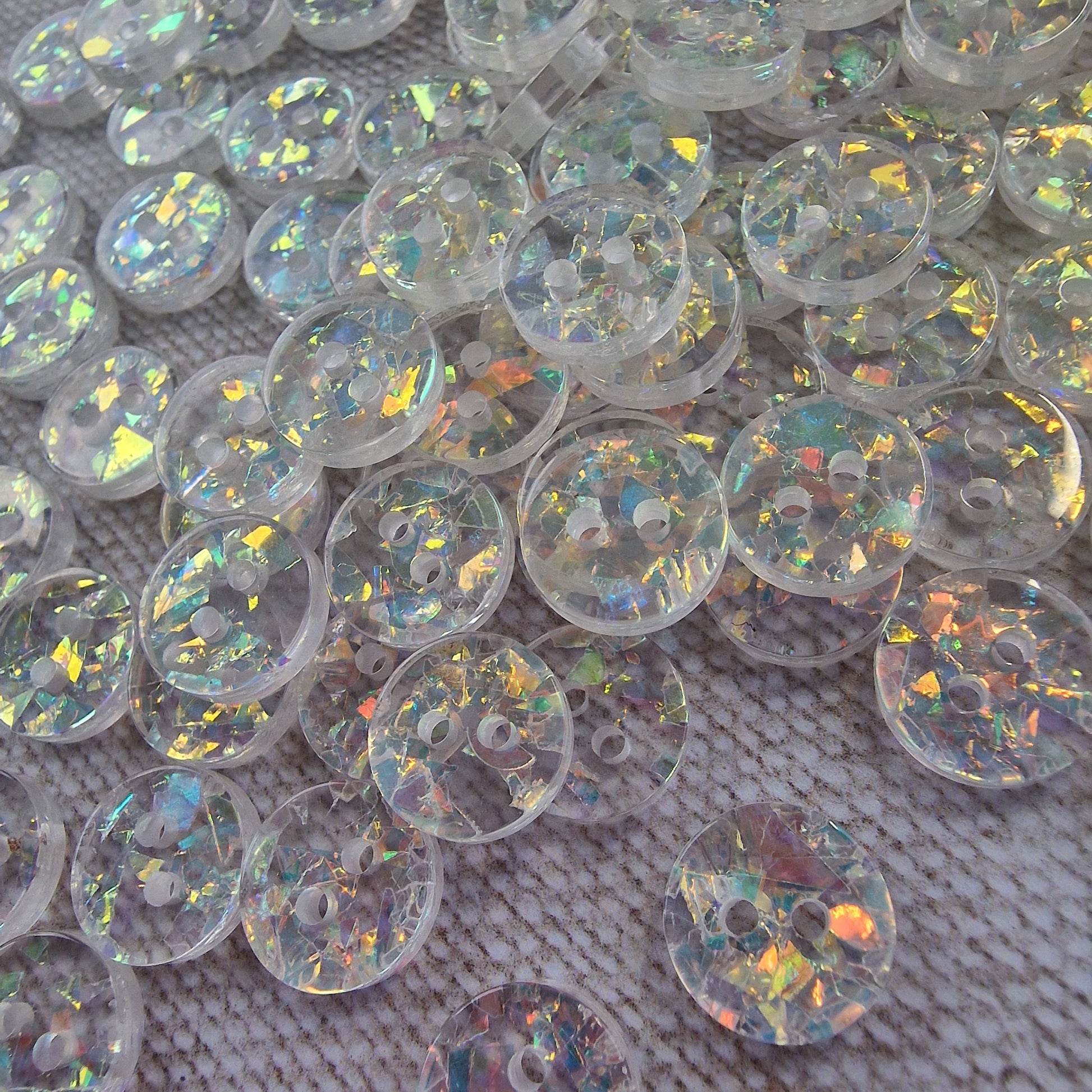Super special glossy resin 'suncatcher' buttons with the most incredible irridescent inclusions in each one.